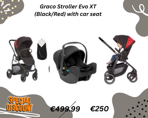 Graco Stroller Evo XT (Black/Red) with car seat