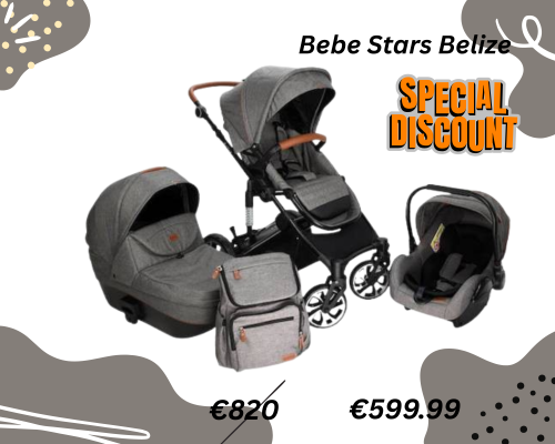 Bebe Stars Belize Ρυθμιζόμενο Καρότσι 3 σε 1 Kατάλληλο για Nεογέννητο Γκρι