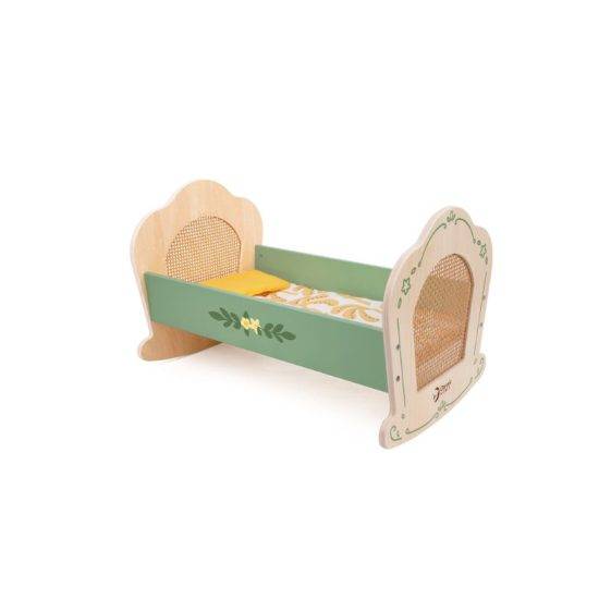 This new green cradle combines vintage design with rattan weaving, resulting in a classic retro style for children to enjoy.