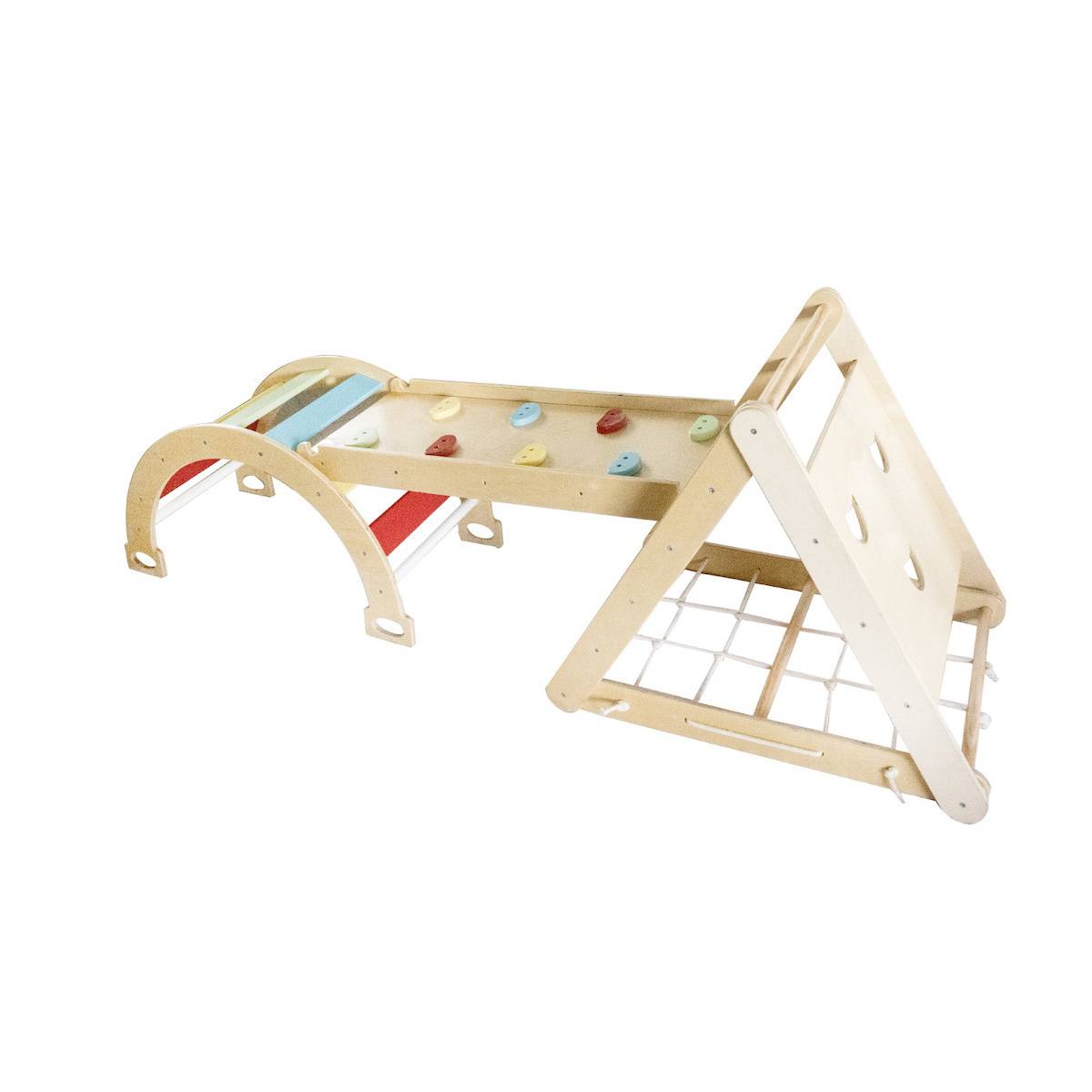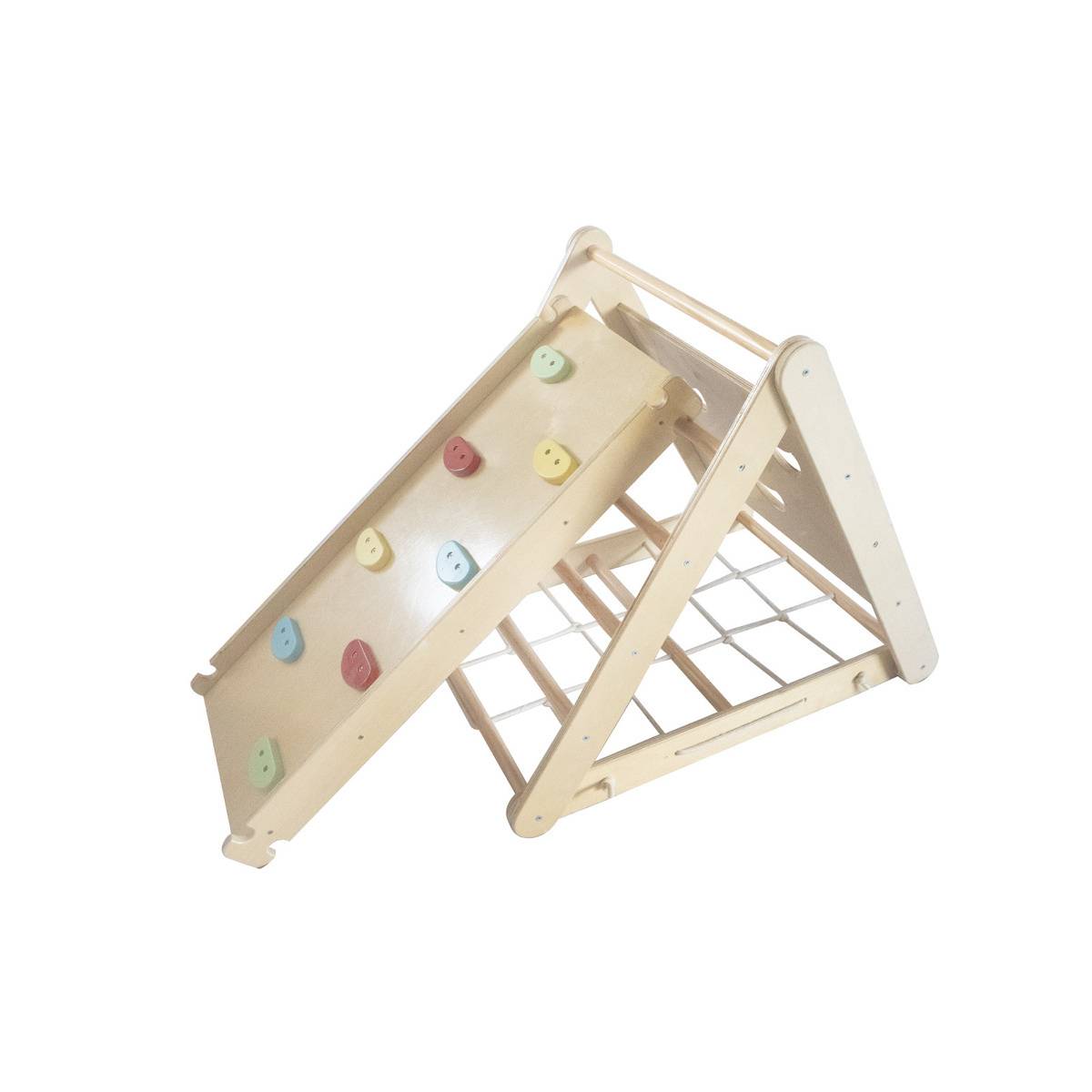 • Climbing triangle with climbing wall, climbing rope, and climbing ladder.