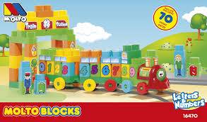 New game of Molto Blocks. Build your train with colored pieces. 70 pieces with different colors, your kids can learn letters and numbers playing and having fun.DIMENSIONS: 54.00L x 10.30W x 35.00HWEIGHT: 1.40 Kgs