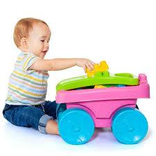 Pink Molto trolley with blocks, with 20 blocks that adapt perfectly to the baby’s hand, improving fine motor skills and early stimulation of the baby.