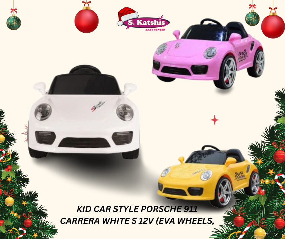 .9016 KID CAR STYLE PORSCHE 911 CARRERA WHITE S 12V (EVA WHEELS, LEATHER SEAT) | βρεφικα ειδη | Katshis Baby Center