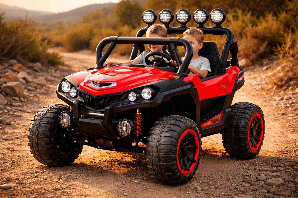 If you’re looking for a vehicle that can cope with a lumpy lawn or handle inclines, this innovative kids electric car is the ultimate choice. Its rear suspension helps keep things smooth, even if the terrain is anything but. With four powerful motors and a wide chassis, there’s enough space and power for two kids to share an off-road adventure, making this one of the best two seat kids electric cars around.
