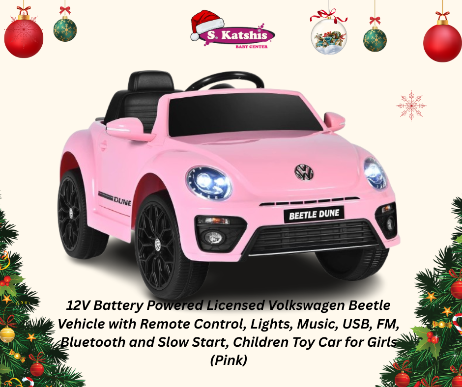 Maxmass Kids Electric Ride on Car, 12V Battery Powered Licensed Volkswagen Beetle Vehicle with Remote Control, Lights, Music, USB, FM, Bluetooth and Slow Start, Children Toy Car for Girls (Pink) | βρεφικα ειδη | Katshis Baby Center