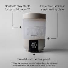 †Based on 260ml Tommee Tippee bottles using the auto quick sterilise and dry cycle time. Does not include the 40 seconds pause between sterilisation and drying, and the cool down time.