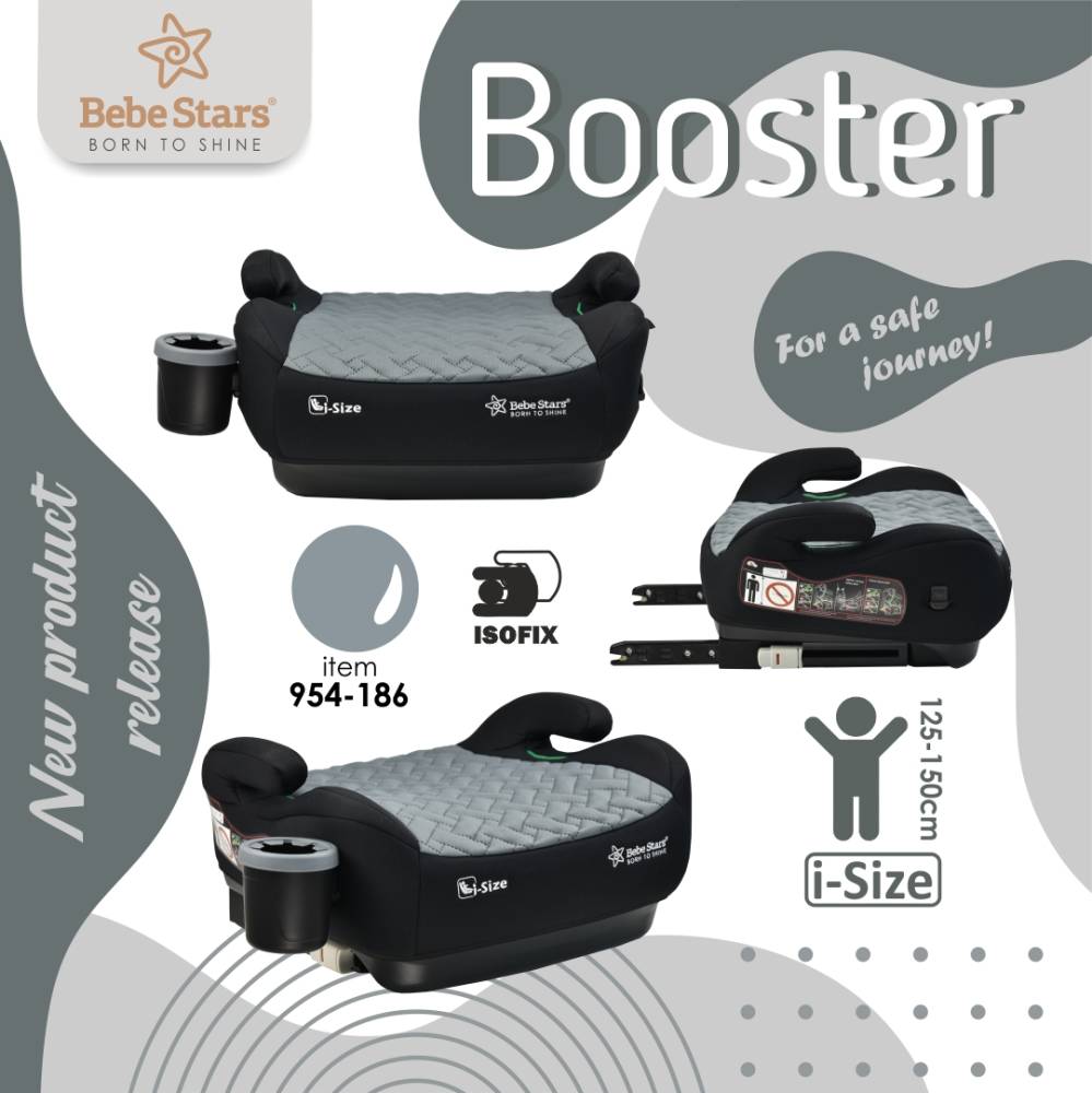 Το νέο booster i-Size της Bebe Stars είναι ένα κάθισμα που ανασηκώνει το παιδί στο κατάλληλο ύψος για τη σωστή εφαρμογή της ζώνης 3 σημείων του αυτοκινήτου στο σώμα του.