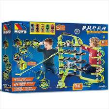 Super Mega Parking – Moltó 5-storey parking garage with 4 play areas, 24 parking spaces and lots of ramps and room to play, automatic lift, heliport and 5 cars included. Descend the impossible ramps at top speed, wash and repair your car and set it going again. Size 152 x 88 cms.