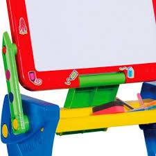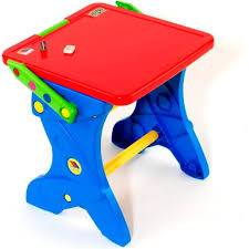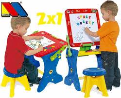 Desk, writing slate and magnetic board, all in one. When the desktop is lifted, it reveals a writing slate and a board for playing with magnetic letters. When lowered, it forms an extremely sturdy desk. Includes magnetic letters, pen and wiper.