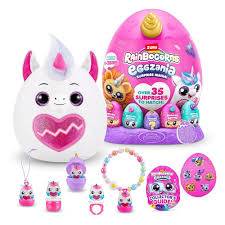 Rainbocorns Eggzania is packed with over 20 unbeatable surprises! Crack into your egg to meet your new Eggzania plush, complete with matching Yolkie, 5 mini egg surprises, Yolkie slime, Yolkie jokes and wearable accessories like rings, stamps, bracelets, and stickers! This egg is oozing with oh so adorable surprises waiting to be hatched!