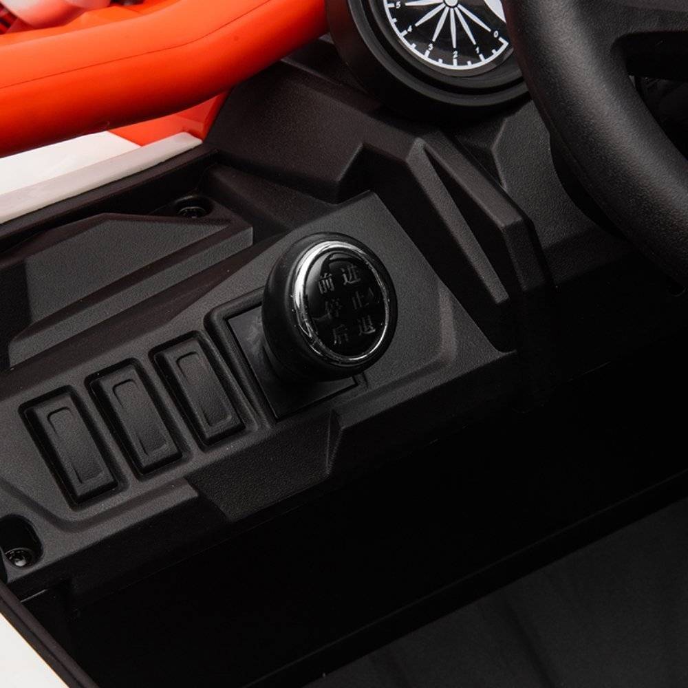 - Χειροκίνητη οδήγηση: Το παιδί μπορεί να ελέγχει το όχημα με το τιμόνι και τον μοχλό αλλαγής κατεύθυνσης.