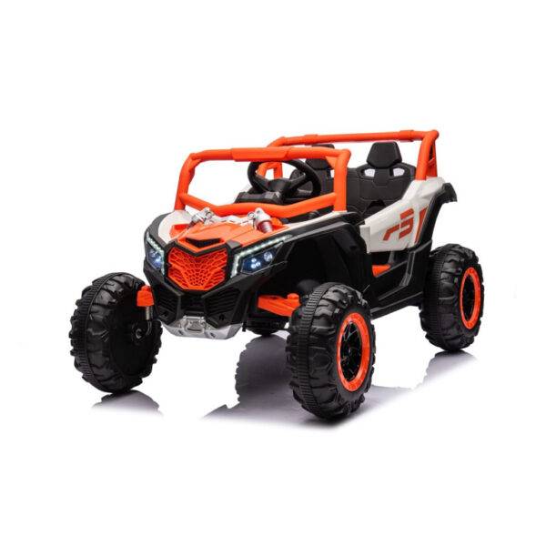 Το Παιδικό Ηλεκτροκίνητο Buggy 4×4 12V αποτελεί μια εξαιρετική επιλογή για μικρούς λάτρεις της οδήγησης, προσφέροντας πραγματική περιπέτεια με μοναδικό στιλ και δυναμική εμφάνιση. Το πορτοκαλί χρώμα του και ο σχεδιασμός τύπου UTV το καθιστούν ιδιαίτερα εντυπωσιακό, ενώ η τετρακίνηση με διπλούς κινητήρες 12V4.5Ah εξασφαλίζει ισχυρή απόδοση και ομαλή κίνηση ακόμη και σε πιο απαιτητικές επιφάνειες.